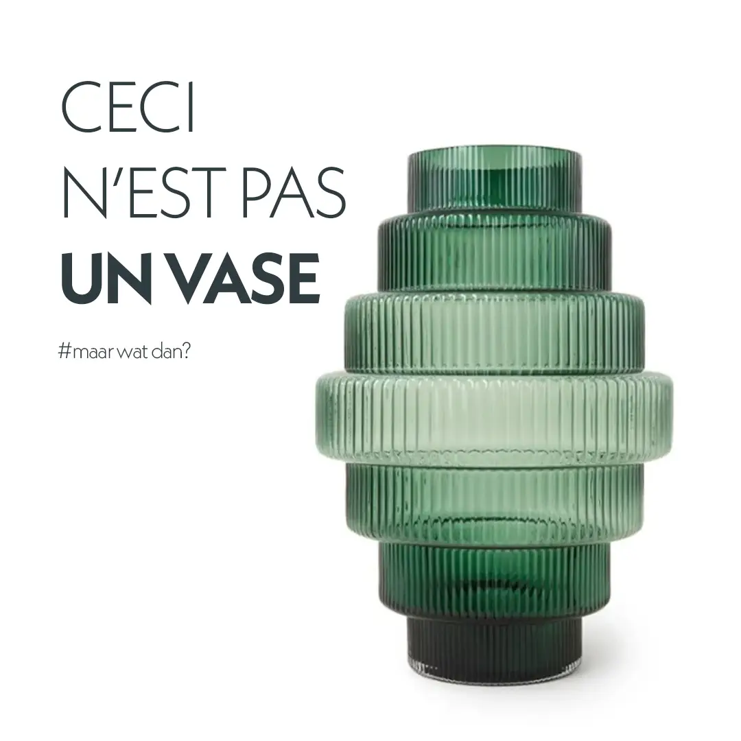 Wat beide webshops doen, is precies wat Magritte bedoelde: ze tonen geen vaas, maar een representatie ervan. Die representatie is strategisch gekozen, afgestemd op de merkidentiteit van de eigen winkel. En precies daarin zit de kracht: niet wat het is, maar wat het betekent.